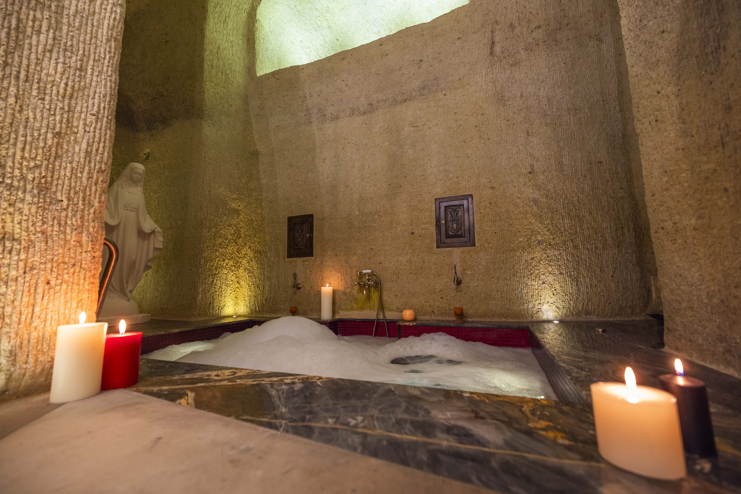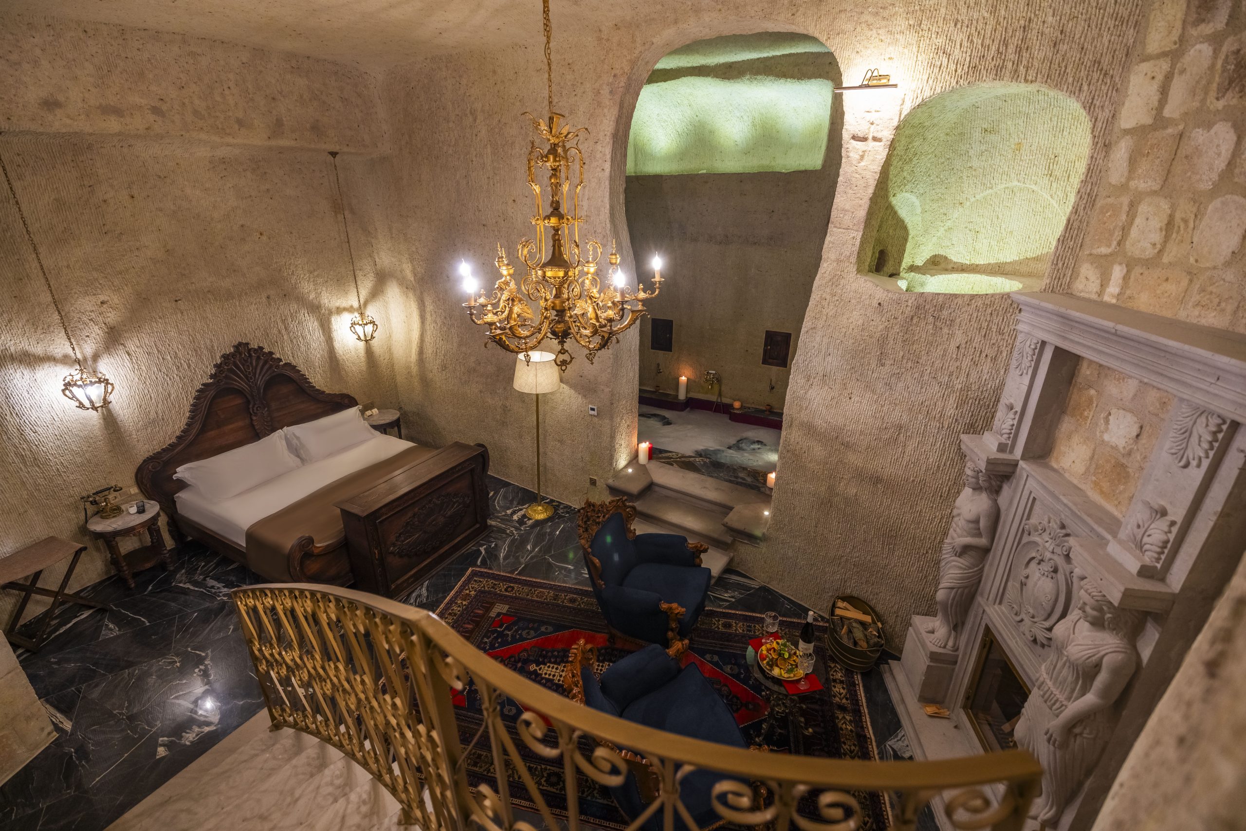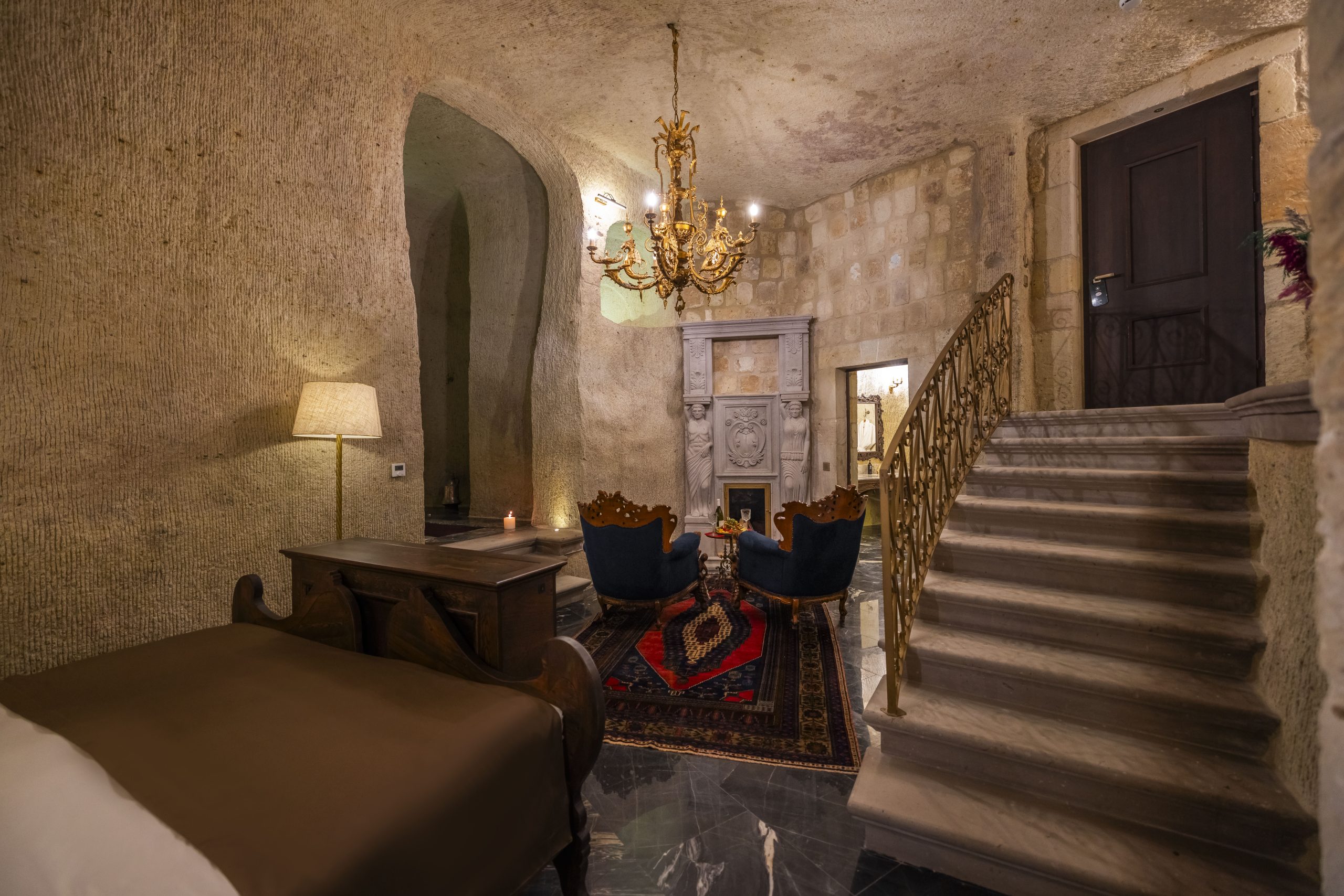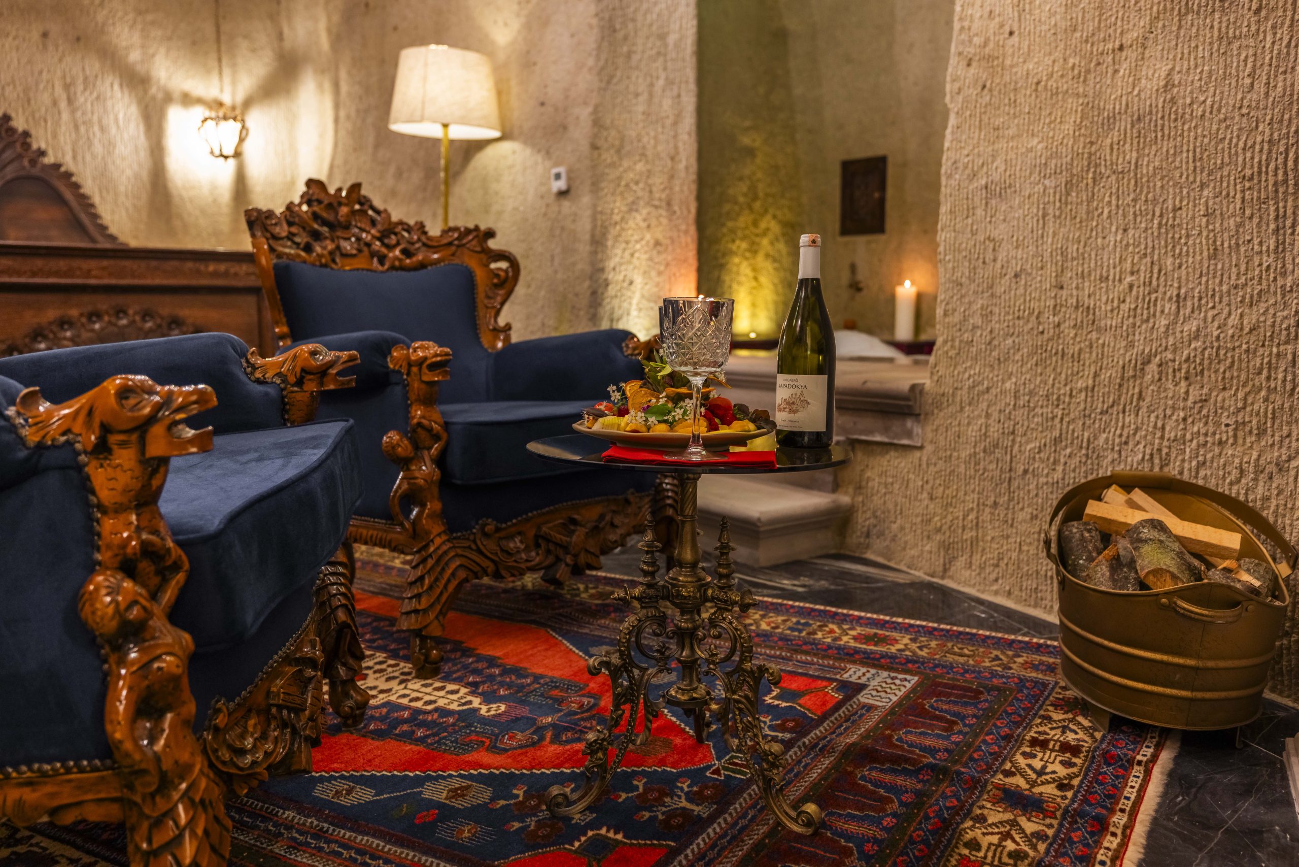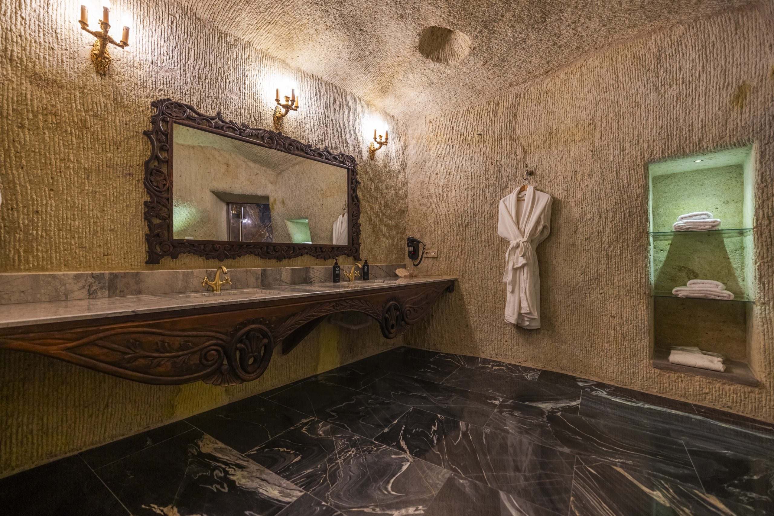 The elegant, non-smoking Premium Cave Suite features 1 double bed with comfortable linens, a cozy fireplace, and private outdoor sitting area next to the courtyard. Modern essentials like free WiFi and a flat-screen HDTV keep you connected while the bathroom’s soothing jetted tub, premium bath products, hair dryer, bathrobes, and slippers help you unwind. Additional amenities include a laptop-sized safe, desk, prayer mats, sitting area, and air conditioning.